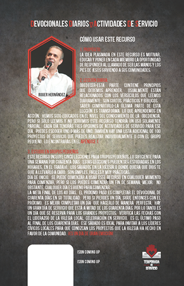 En este recurso se incluyen lecciones diarias y estudios de grupos pequeños. Además, como beneficio adicional, hemos incluido más de 101 ideas de proyectos de servicio. Las lecciones se pueden estudiar en el hogar, en el lugar de trabajo, durante los servicios del sábado o donde sea que Dios lo lleve. Son simples, fáciles y muy prácticos.